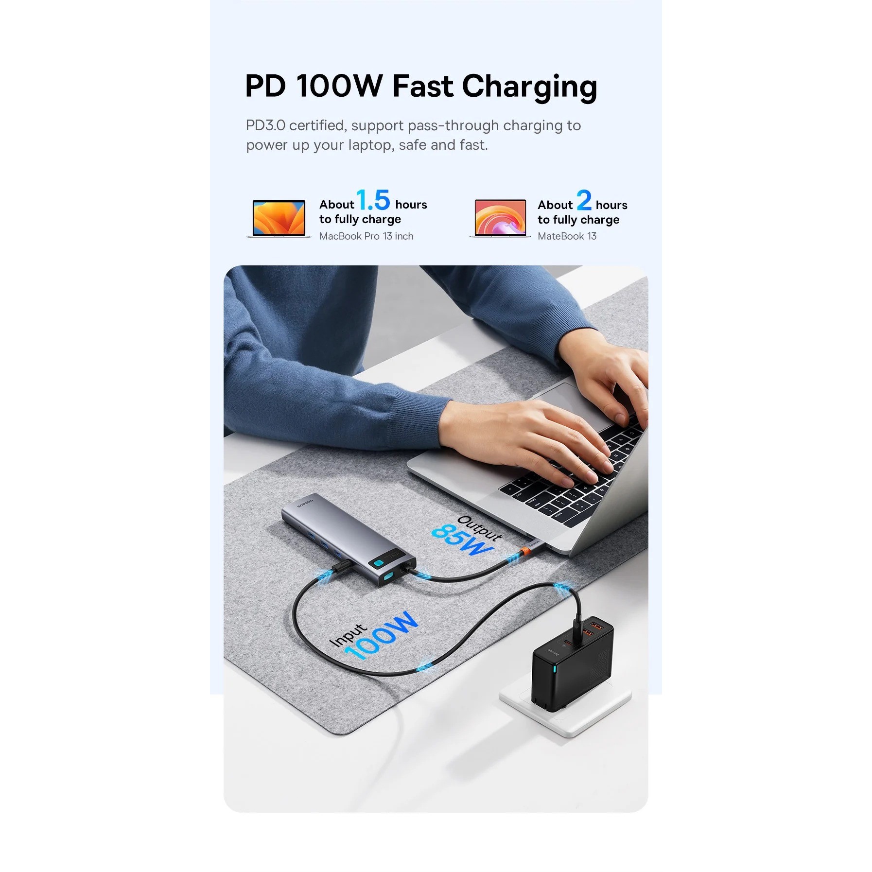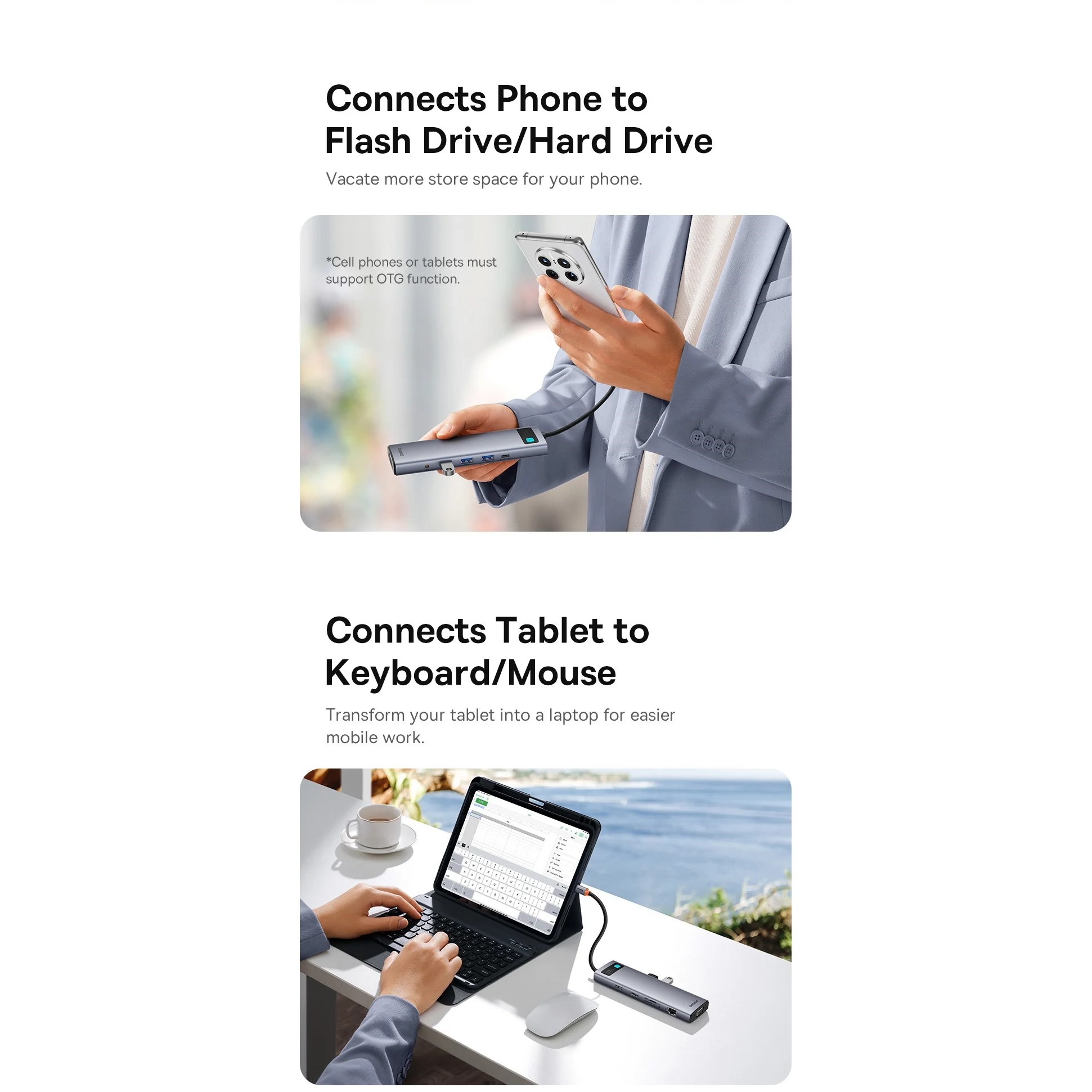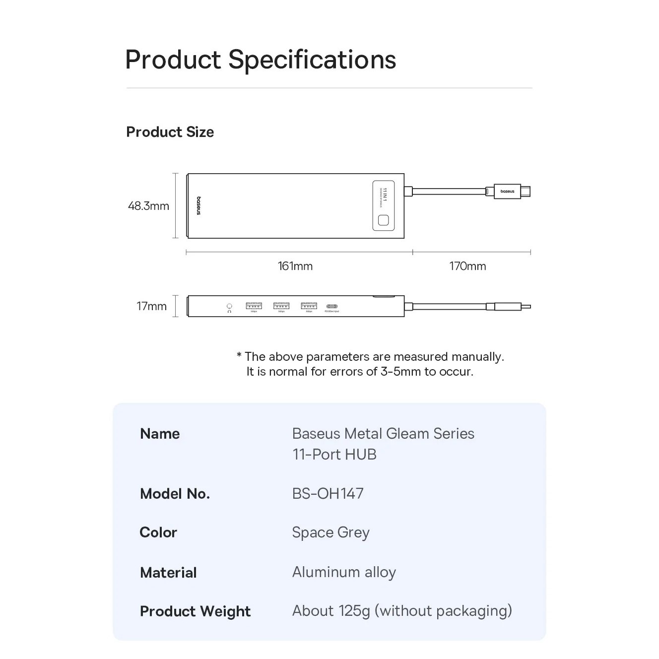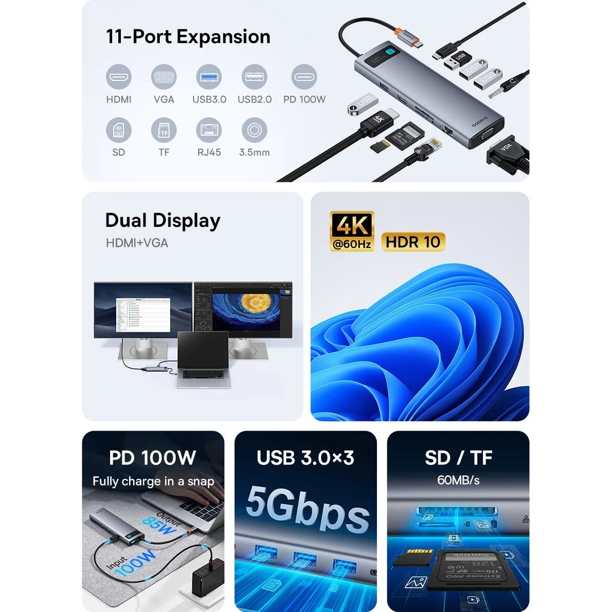 Baseus Metal Gleam Series 11-Port HUB delivers outstanding visual clarity supporting 4K resolution at a fluid 60Hz refresh rate which ensures sharp and vibrant images. It offers wide compatibility and ensures seamless operation with devices including laptops, tablets, smartphones, and gaming consoles.