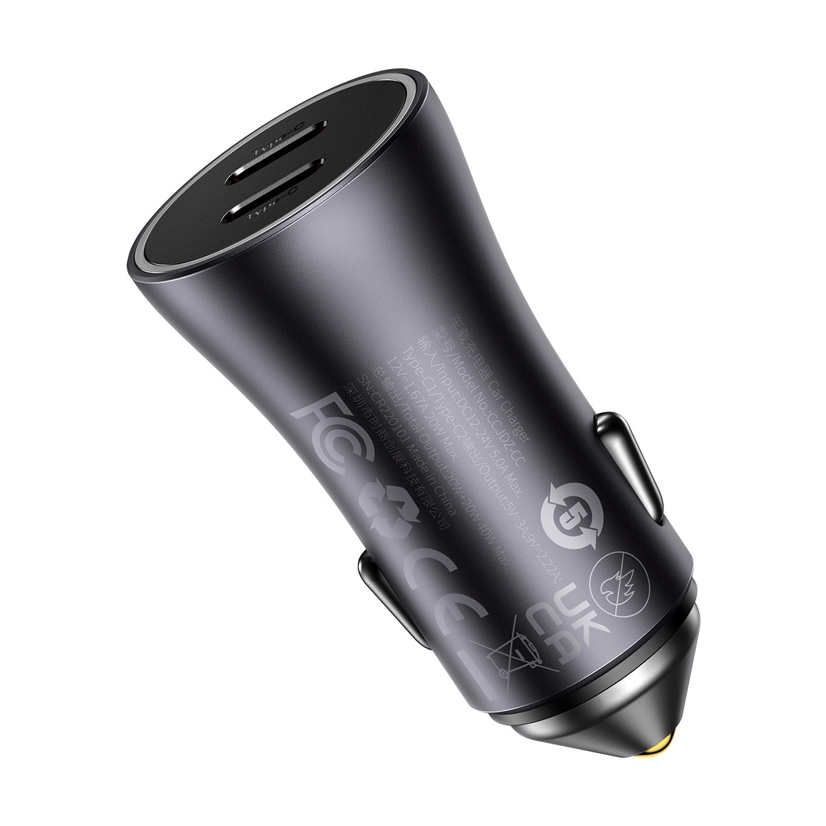 Baseus Golden Contactor Pro Dual Fast Charger Car Charger C+C 40W Dark Gray