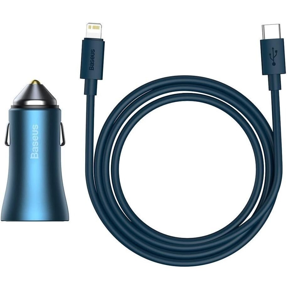 Baseus Golden Contactor Pro Dual Quick Charger Car Charger U+C 40W(With Baseus Simple Wisdom Data Cable Type-C to iP 1m)Blue
