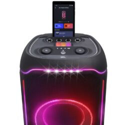 Lights, color, party! Transform your space into a captivating,full sensory experience with the biggest multi-dimensional lightshow of any party speaker. It’s got a unique starry night effect, cool light trails, strobes, and even lights that project onto any surface it’s sitting on. All of it syncs to your music and can be easily controlled via the streamlined, user-friendly dials on the top panel or through the JBL One app.