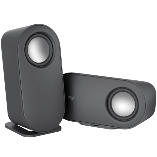 Say goodbye to “boxy.” These oval-shaped speakers are ready to stun in sleek graphite gray, blending into your desktop environment without getting in the way. Lay them upright or horizontally to get the look you want. They’re so compact, you can even sneak them under your monitor to save space. Use them to curate your space.