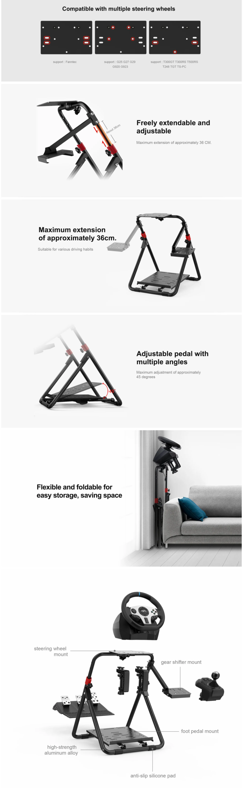 • Compatibility: PXN-A9 steering wheel stand is compatible with Logitech G25 / G27 / G29 /G920 /GT500 /T300GT/ T300RS/ T500RS/TGT/TS-PC/PXN V9/V900/V3 Support Fanntec folding stand, suitable for most steering wheels Racing wheel stand in the steering wheel.