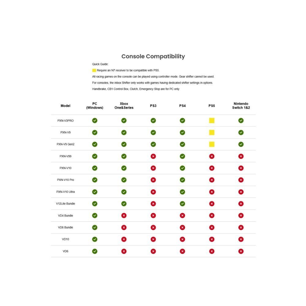 Featuring a simple plug-and-play USB setup, the PXN N7 converter enables smooth compatibility with supported PXN racing wheels and arcade sticks. It is an ideal solution for sim racing enthusiasts seeking consistent, responsive control when gaming on PS5.