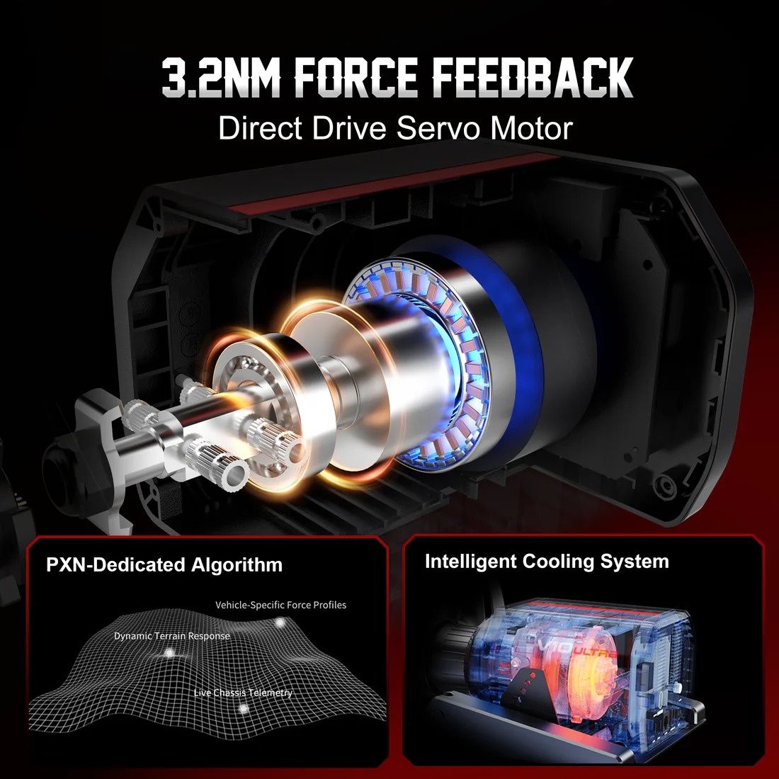 • 3.2Nm Direct Drive Servo Motor: Servo motor direct-drive system delivers 3.2Nm of torque for realistic feedback