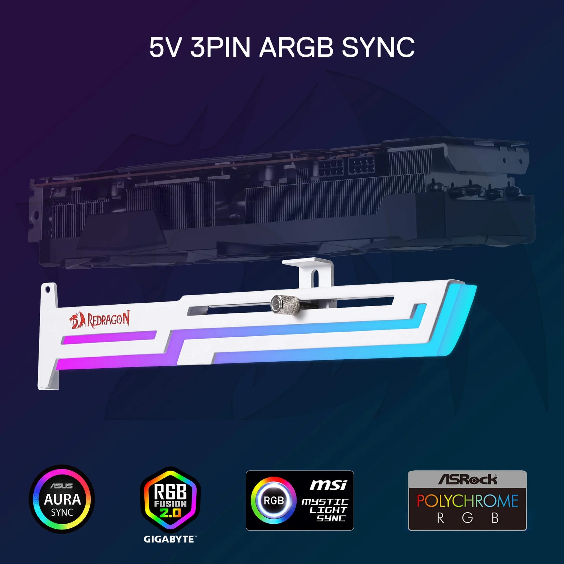 The Redragon GPU bracket has a built-in advanced ARGB lighting system that supports 5V 3PIN ARGB motherboard synchronization and seamlessly integrates with your existing RGB lighting to create a cohesive and visually stunning gaming environment. * Please do not connect it to 4-pin 12VRGB.*