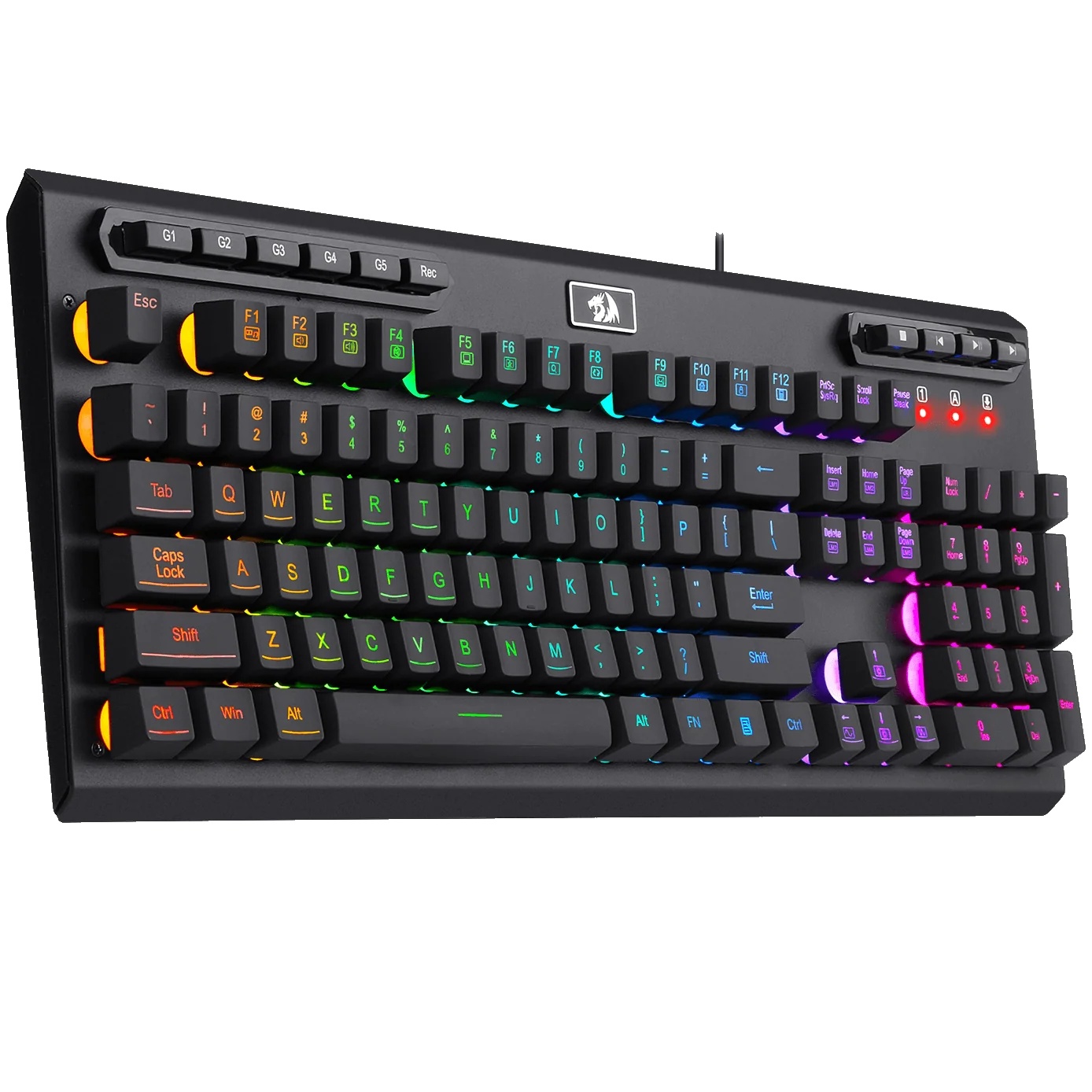 Take advantage of the Redragon K513 Gaming Keyboard and enjoy the best of both worlds. This keyboard provides a standard 104 Keys linear and fluid typing experience thanks to its classic full-size layout and the well-liked mechanical-like membrane switch. The K513 is your entryway to immersive gaming and is perfect for both newcomers and gamers.