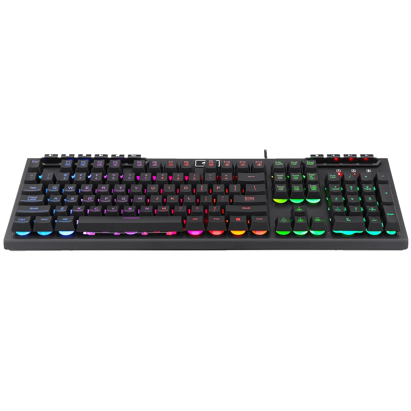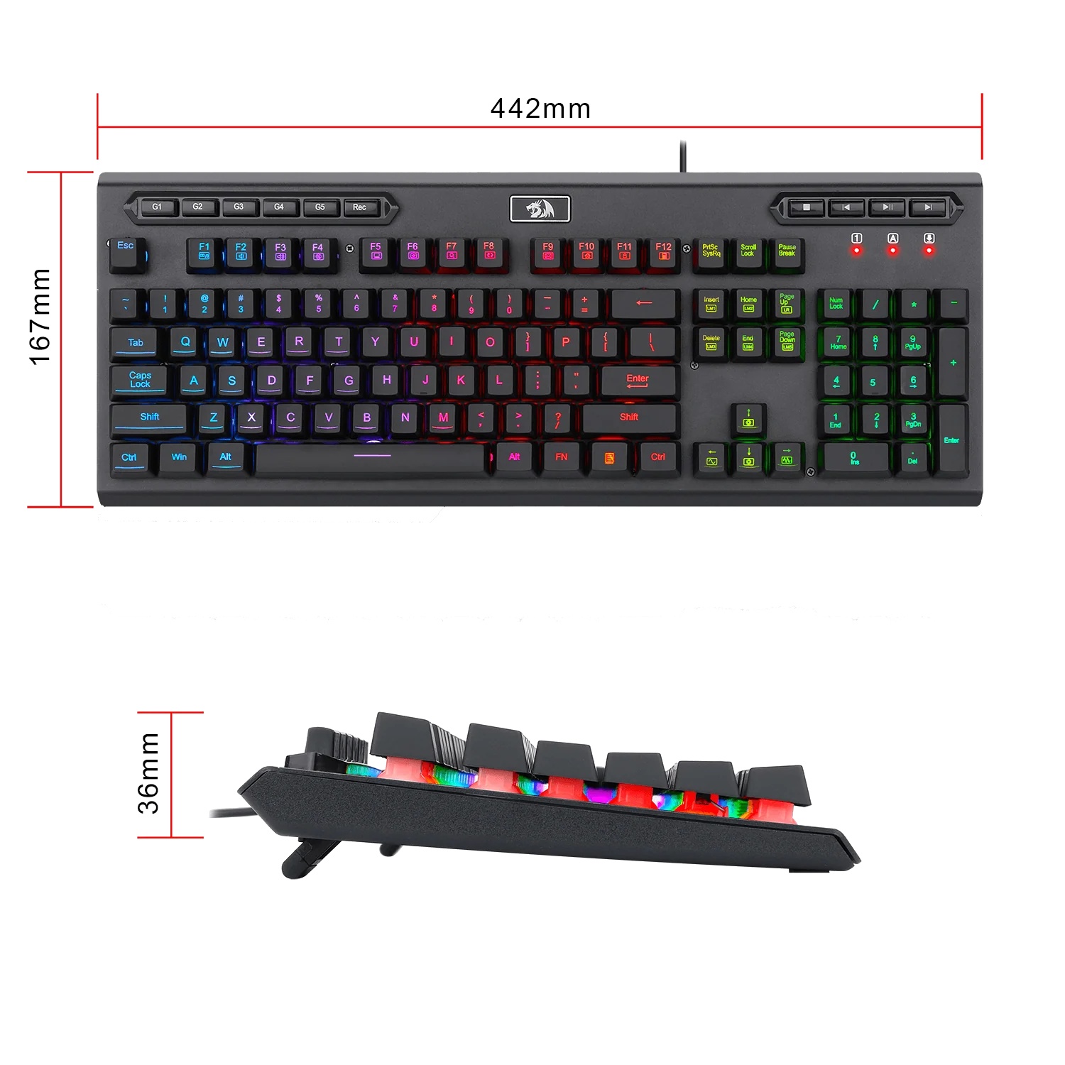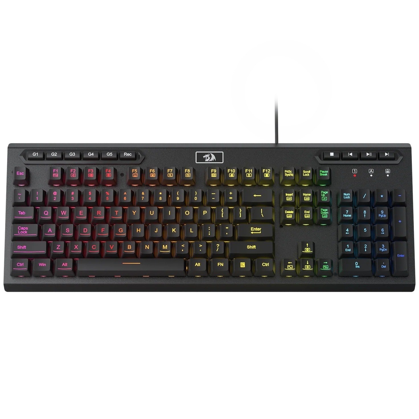 Experience the best of both worlds with the Redragon K513 Gaming Keyboard. Designed with the timeless full-size layout and enhanced with the popular mechanical-like membrane switch, this keyboard offers a linear and smooth typing experience. Ideal for both gaming enthusiasts and newcomers, the K513 is your gateway to immersive gaming.