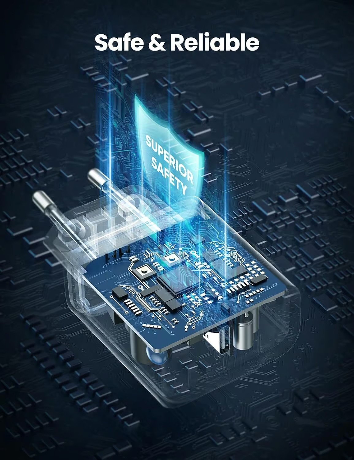 Safety is a priority with this charger. It comes equipped with a smart chip that prevents short circuits, overheating, over-current, and over-voltage, giving you peace of mind during every charge. The flame-retardant ABS housing enhances heat dissipation, ensuring durability and consistent performance over time.