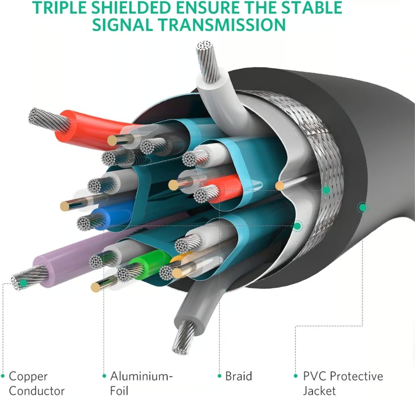 - RELIABLE PERFORMANCE: 28AWG oxygen-free copper conductor with triple shielding minimizes interference.