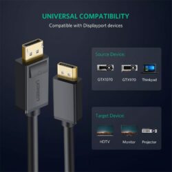 UGREEN DP Cable 1.2 male to male enables you to connect your Displayport equipped PC/laptops to monitors, projectors, HDTVs for high resolution video and audio transmission.