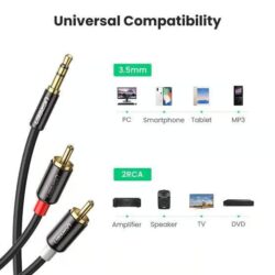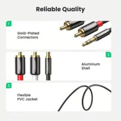 The UGREEN 10749 3.5mm Male to 2RCA Male Cable, 2M length, offers a range of features suitable for versatile stereo audio connections: