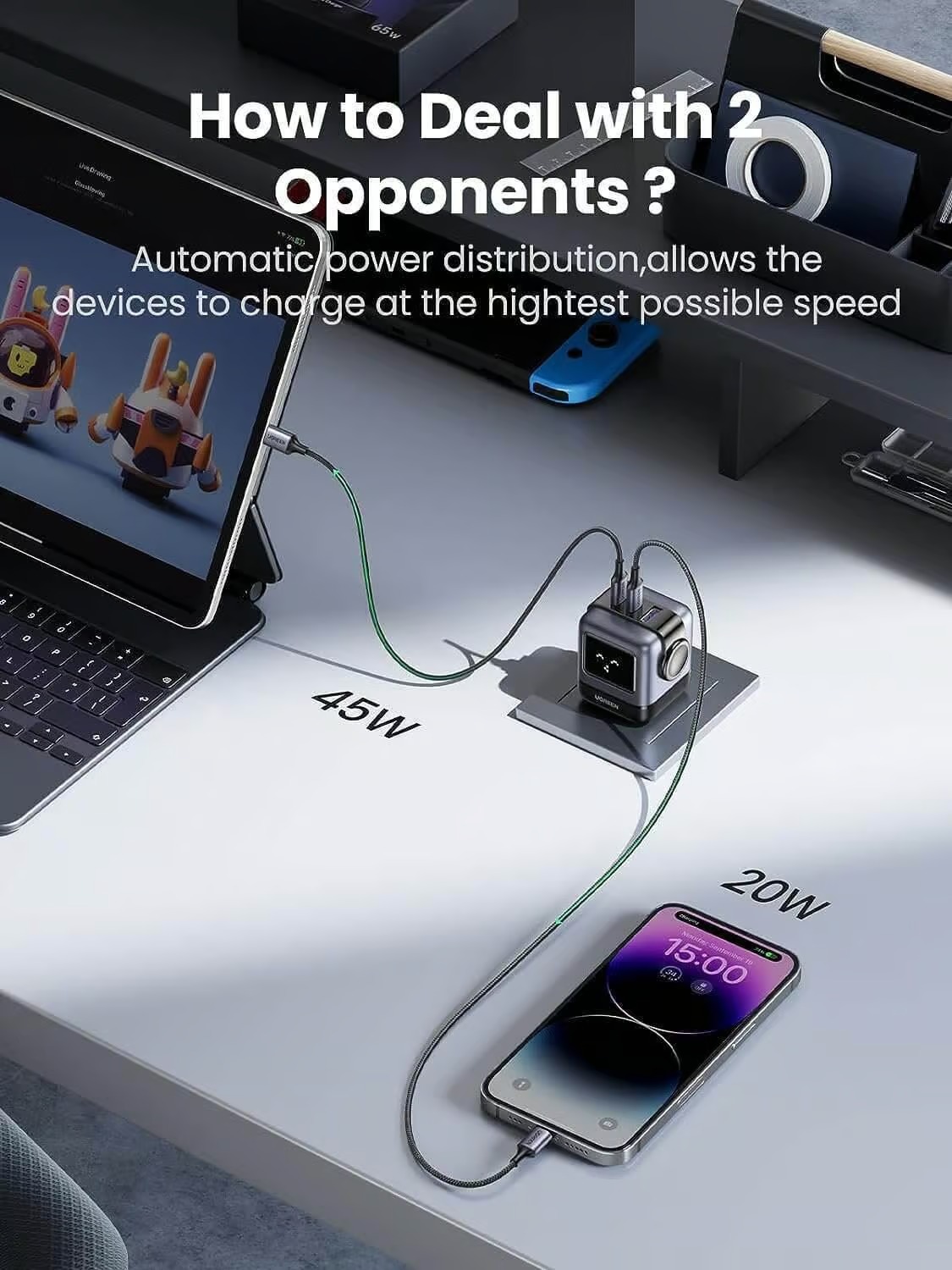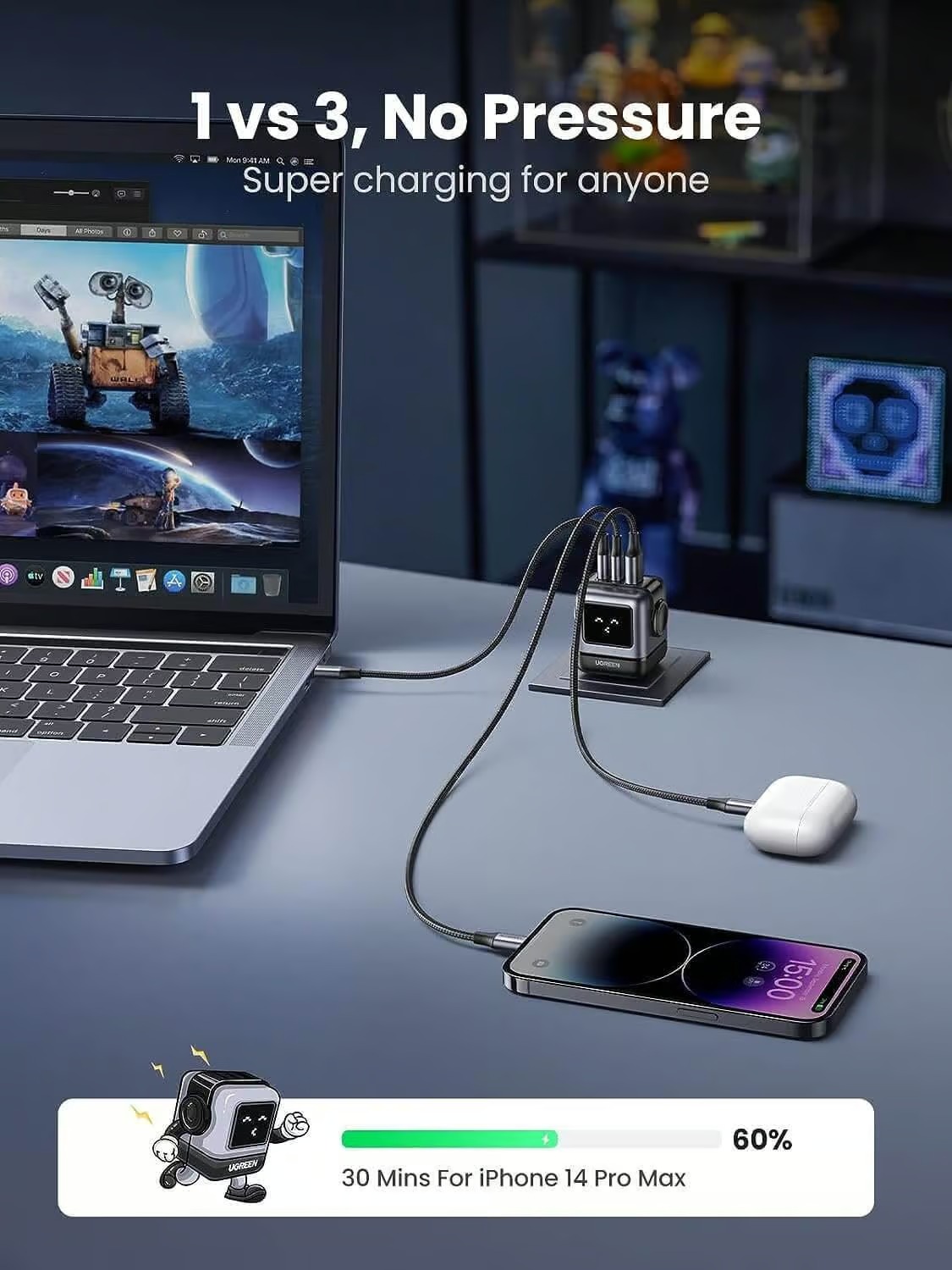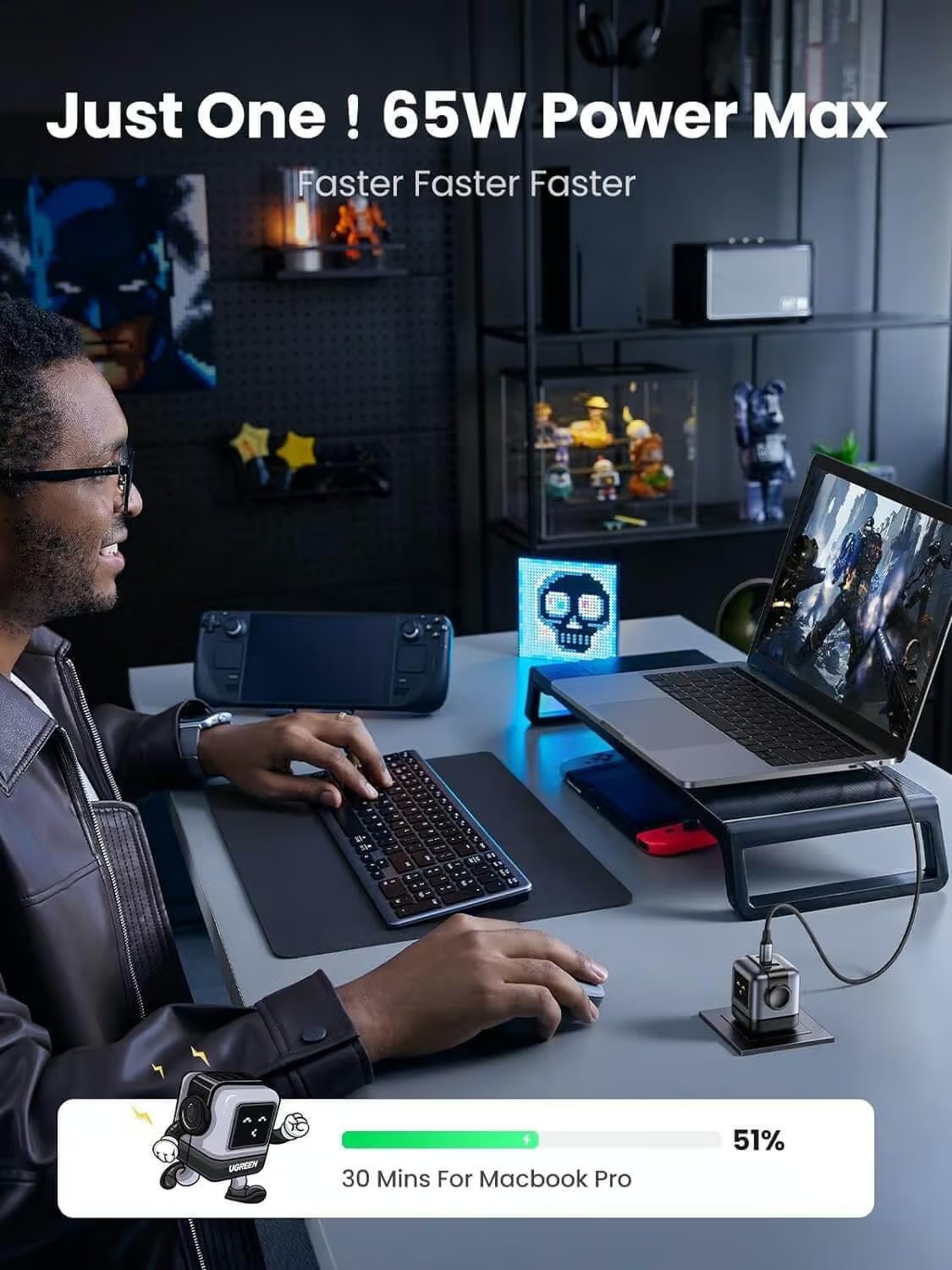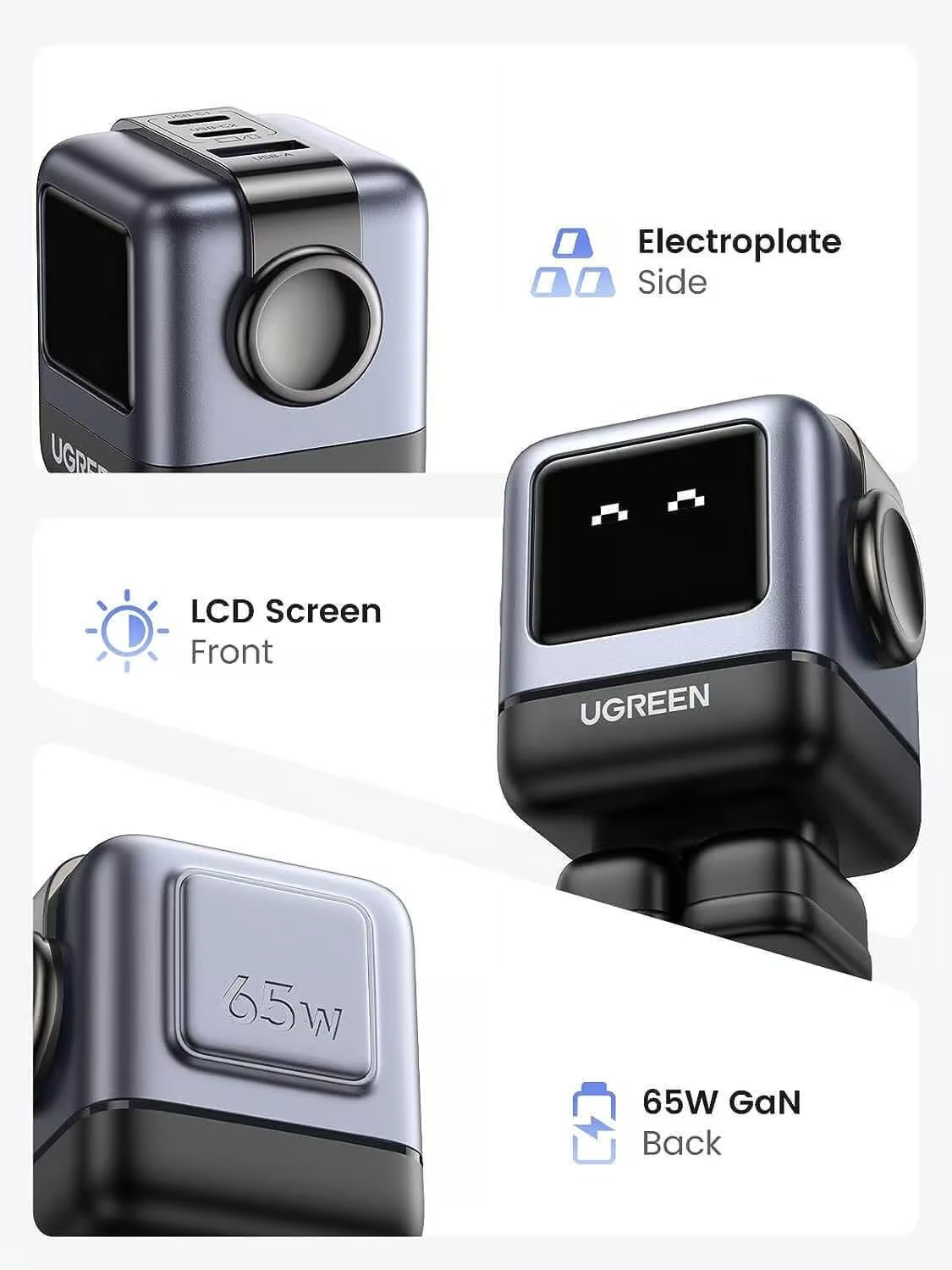 - RobotGaN Charger: Our cute 65W USB C charger combines functionality with playfulness.