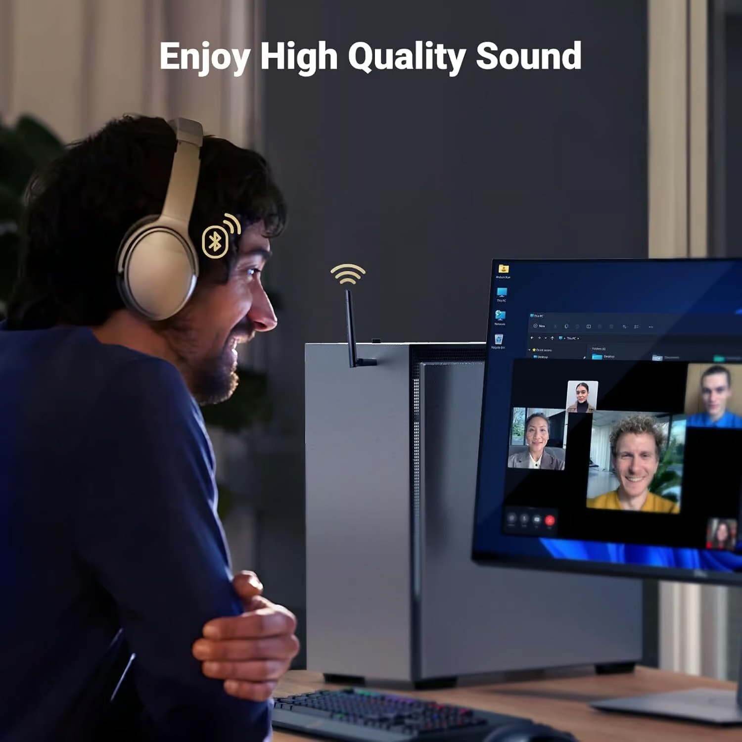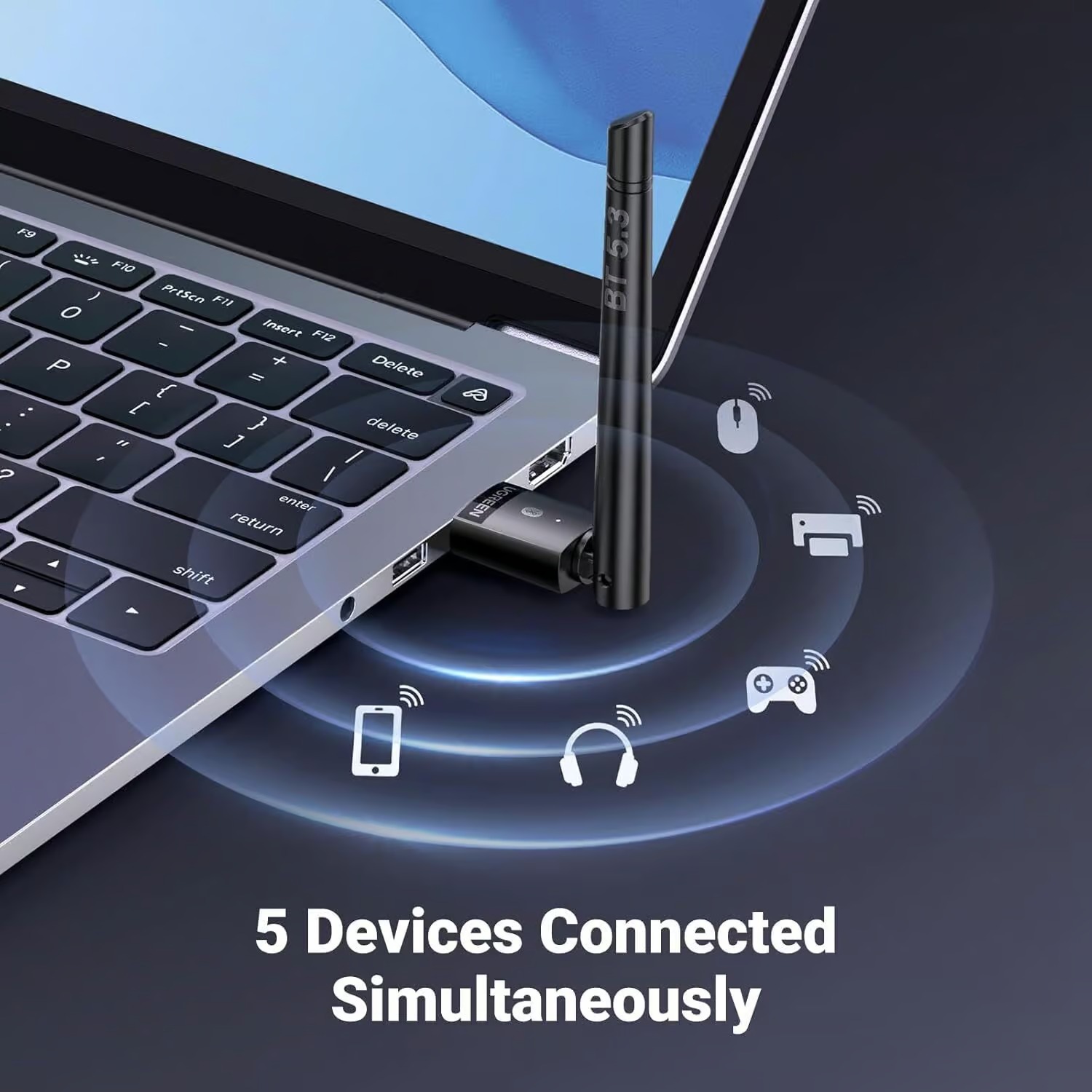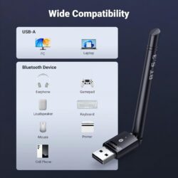 - Up to 5 Devices Sync Connected: You can fully use the USB Bluetooth Adapter to connect multiple devices simultaneously, Can work with 5 devices at the same time, such as Bluetooth speakers, keyboards, headsets, mice, Which means that you can listen to high-quality music while using the keyboard or other devices.