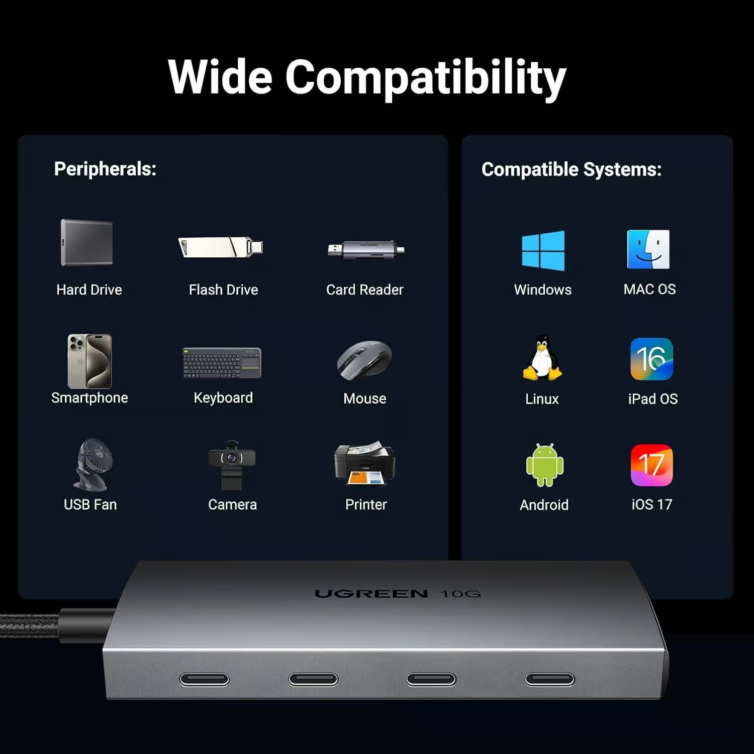 UGREEN 15651 USB C Hub Gen2 10Gbps 4 Ports USB-C 3.2 High-Speed USB-C Multiport Splitter