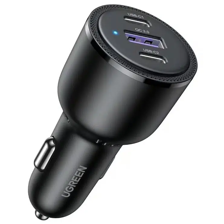 The UGREEN 69W USB-C Car Charger (Model: 20467) is a high-performance car charger designed to keep your devices powered up while on the road. Equipped with two USB-C ports and one USB-A port, it supports Power Delivery (PD 65W) and Quick Charge 3.0 (QC3.0) for rapid charging of smartphones, tablets, and even laptops.