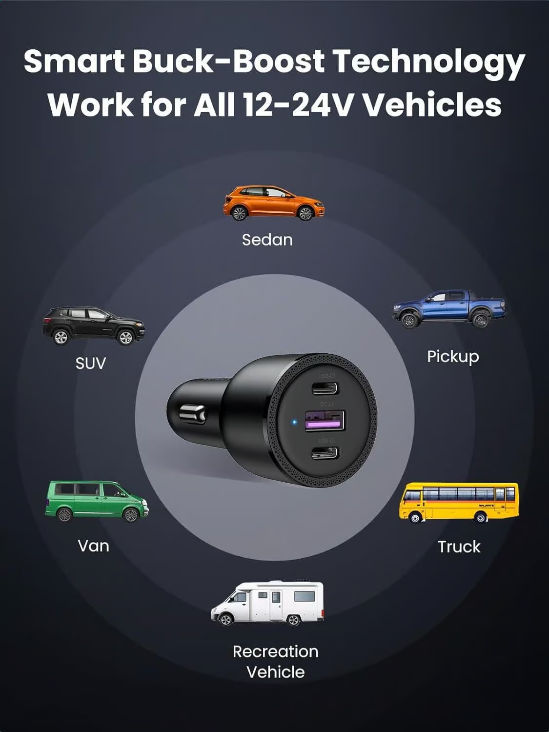 • Type                       : 3-Port USB-C & USB-A Car Charger