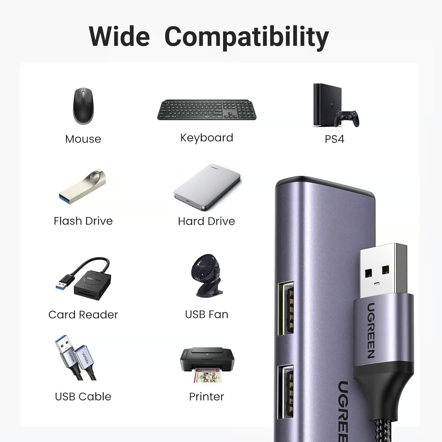 Home Shop USB Hub And Power Socket UGREEN 20805 USB 3.0 Hub 4 Ports Aluminum Ultra-Slim USB Multiport Adapter Powered USB C