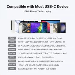 Q: Is this adapter compatible with all USB-C devices? A: It is compatible with most USB-C devices, including popular smartphones, tablets, and laptops. Please check the compatibility list for specifics.