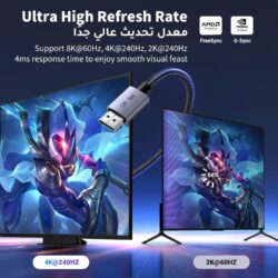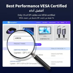 Upgrade your display experience with the UGREEN VESA Certified DisplayPort 1.4 Cable, designed for gamers, designers, and professionals. This high-speed 8K DP cable delivers 32.4Gbps bandwidth, supporting 8K@60Hz, 4K@240Hz, and 2K@240Hz resolutions with zero lag. It’s backward compatible with DP 1.3/1.2/1.1 and works flawlessly with NVIDIA, AMD, Dell, HP, and Alienware systems.