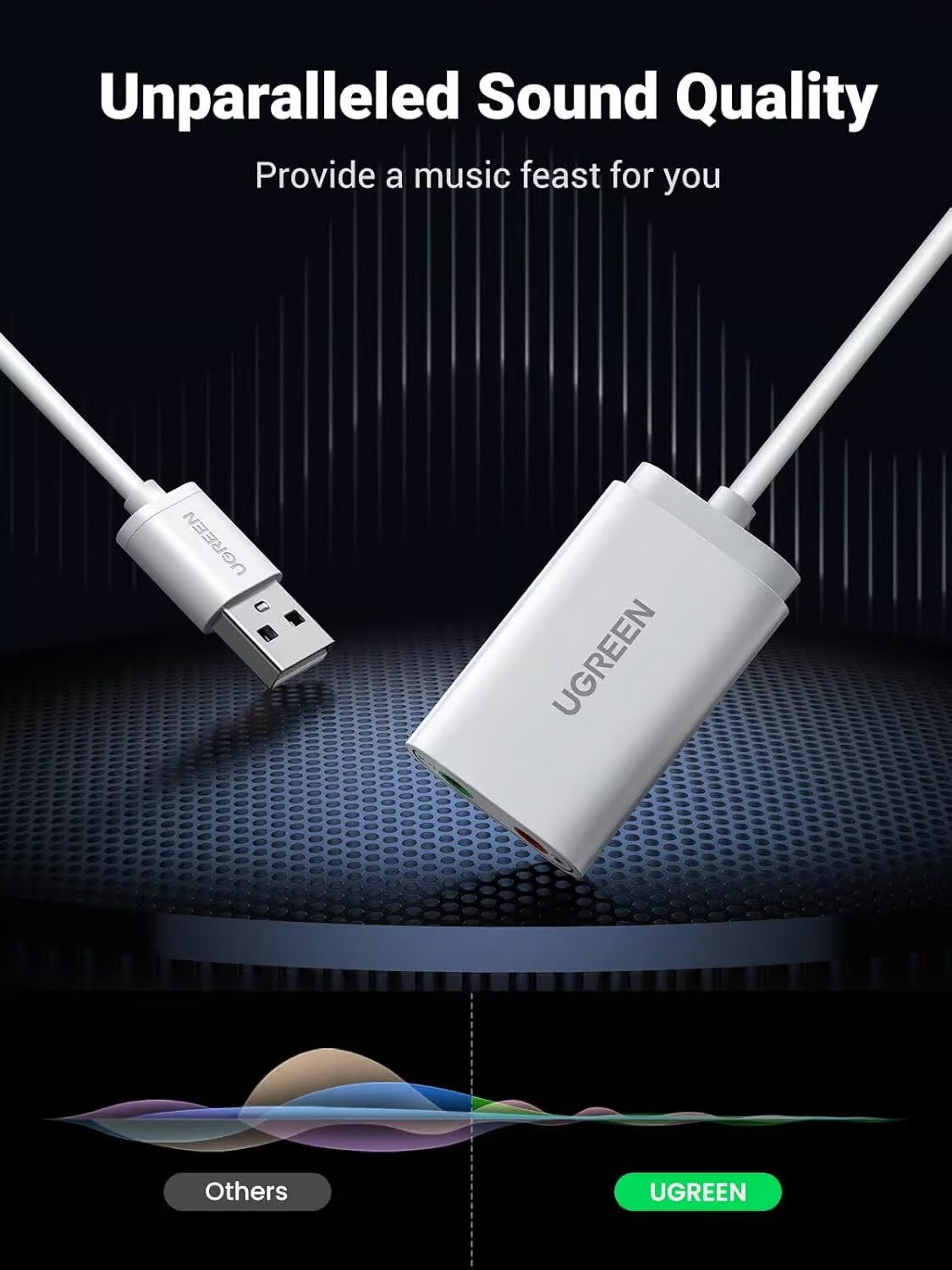 UGREEN 30143 USB Audio Adapter External Stereo Sound Card with 3.5mm Headphone and Microphone Jack