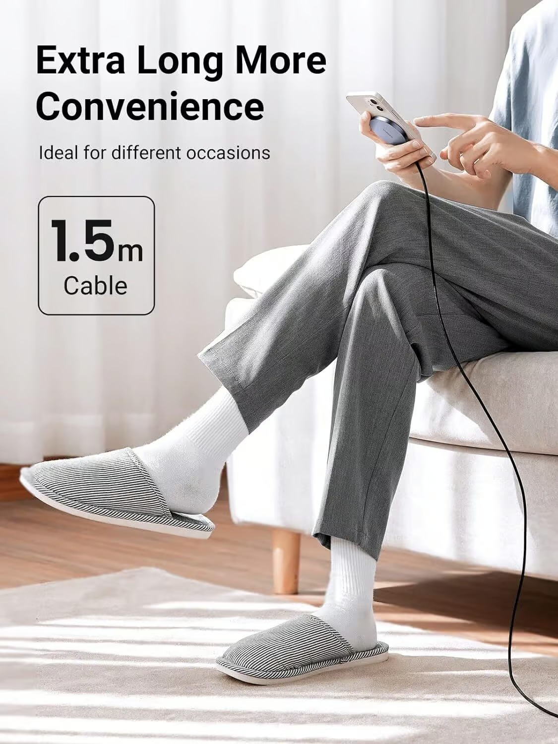 Featured with magnetic charging, automatically attach the phone with magnetism and charge it at once, whether you want to play games, make calls, or chat on phone, it will not affect the charging, and the equipped 1.5M cable keeps you away from boring waiting process for charging.