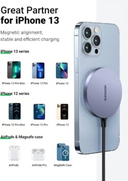 Don’t take off your phone case, UGREEN iPhone wireless fast charging pad can directly charge your phone through magnetic case, just place it on the central of the wireless pad and charge it.
