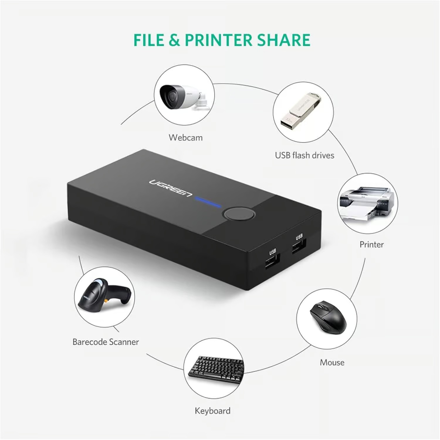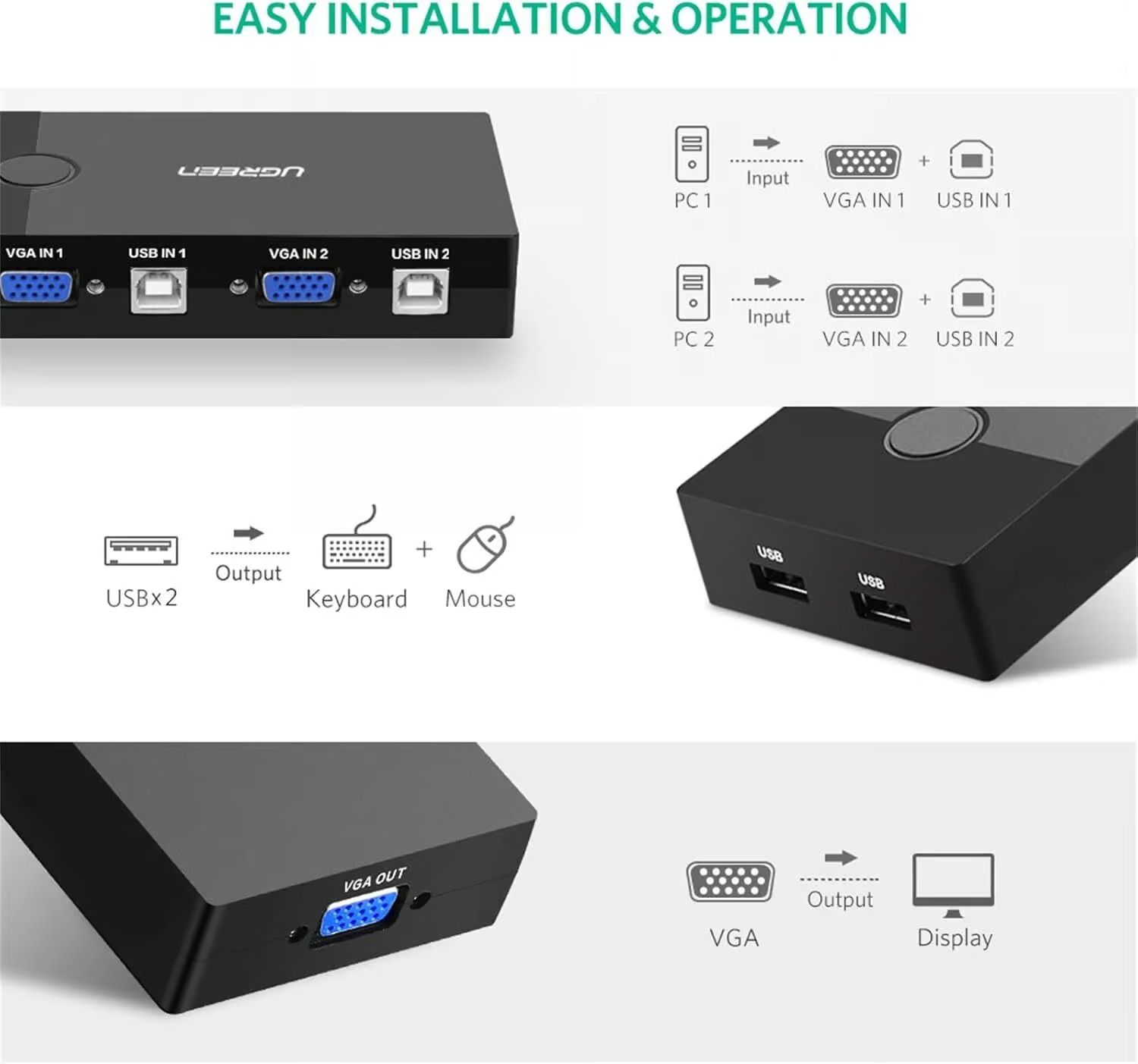 • 1 x Ugreen 2-Port USB VGA KVM Switch