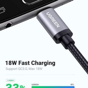 The UGREEN USB A to Micro USB Cable offers fast charging and reliable data sync in one durable, high-performance package. Featuring ultra-thick copper cores, it delivers up to 18W of power (5V/2.4A), charging devices up to 69% faster than standard cables. It can fully charge a Samsung Galaxy S7 in just 100 minutes when used with a Quick Charge 2.0 or 3.0 adapter.