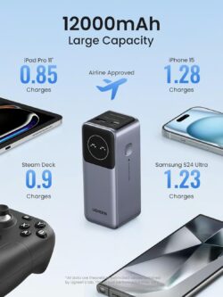 UGREEN 35526 Nexode Power Bank 12000mAh 100W PD PPS Fast Charging Portable Charger Battery Pack with 1USB-C 1USB-A and Smart Display for MacBook Air/ipad/iPhone 16 / Galaxy S24 / Steam Deck / Google etc