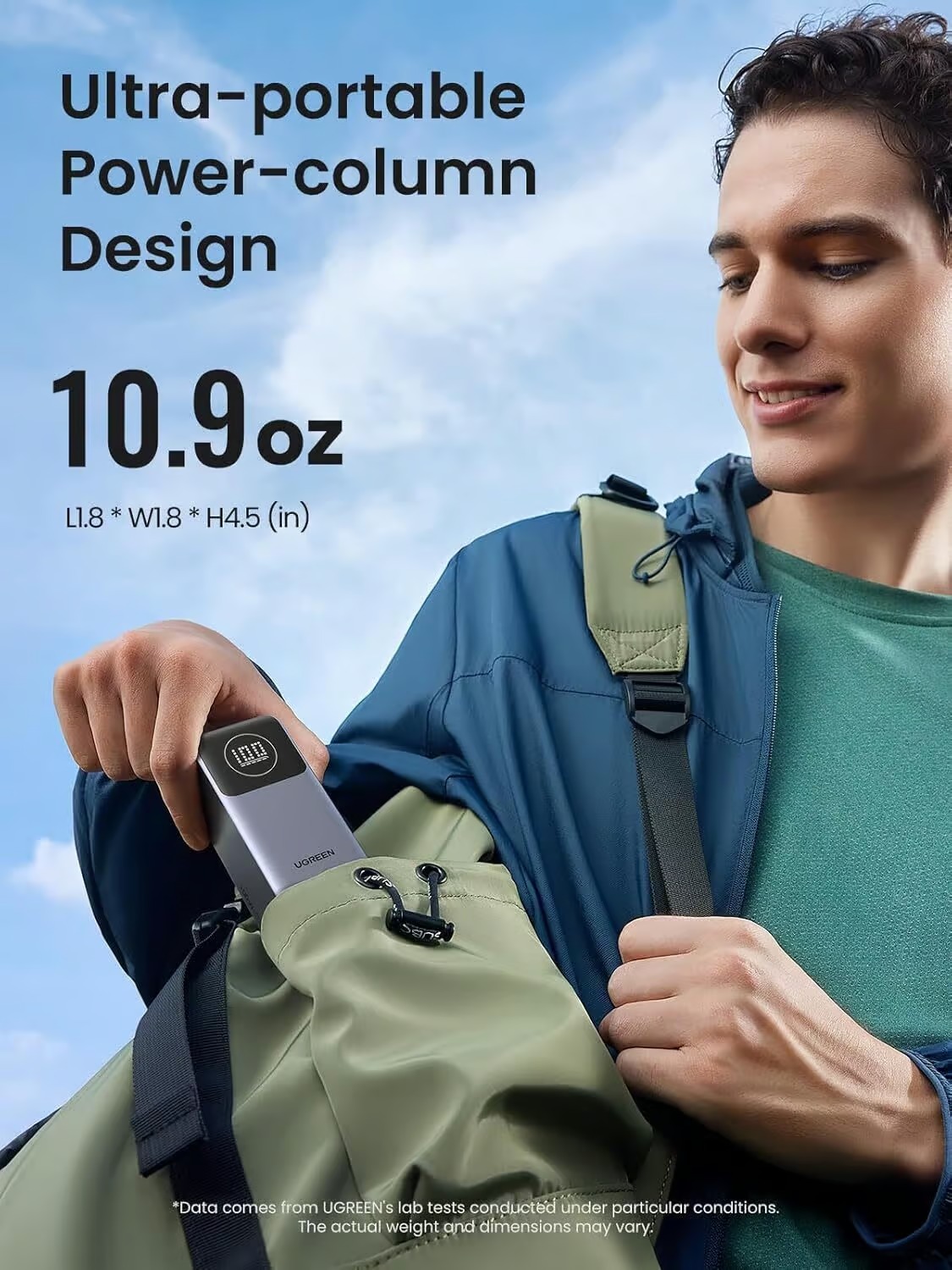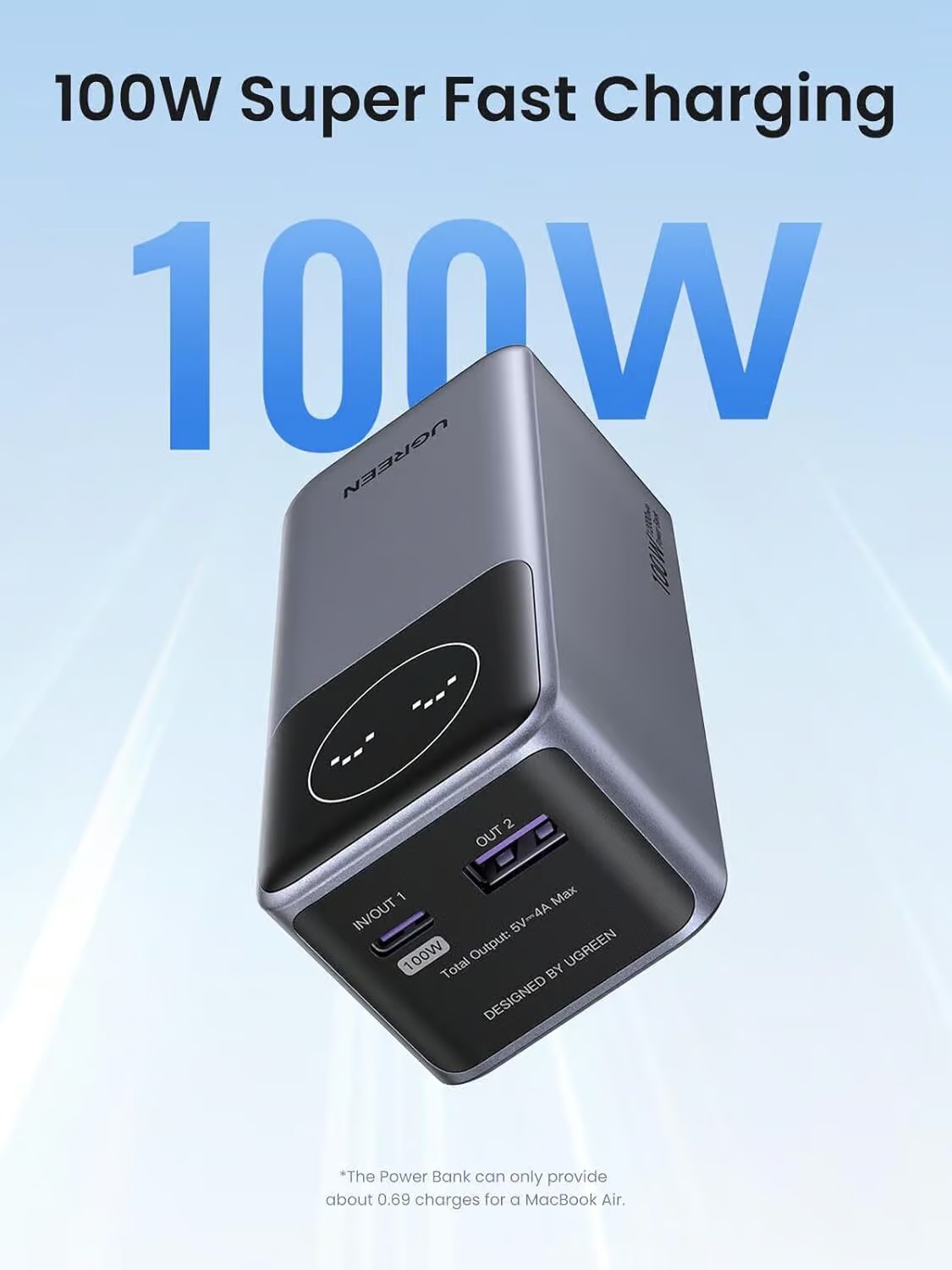 • Ultra-fast 100W Output: Experience fast power-ups with Ugreen 100W portable charger, it quickly charges tablets and smartphones to their maximum rates, juicing up an iPad Pro M4 to 40% in just 30 minutes or boosting an iPhone 15 to up to 60%