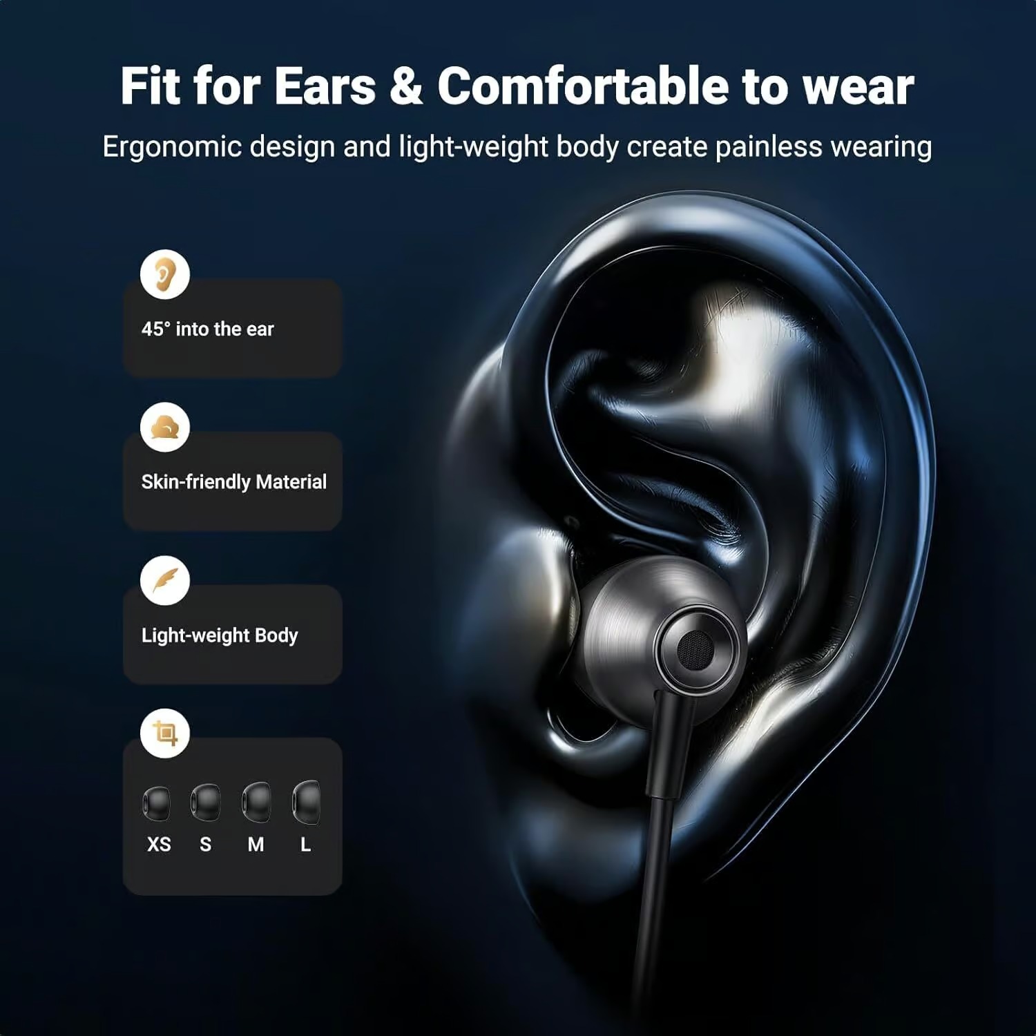• Comfortable In-Ear Fit: The ergonomic and comfortable design of In-Ear earphones. This design seamlessly follows the natural contours of your ear canal for a snug, secure fit. Whether you’re on a morning jog, commuting to work, or simply relaxing at home, these earbuds stay in place for hours of uninterrupted listening pleasure.