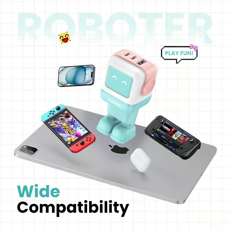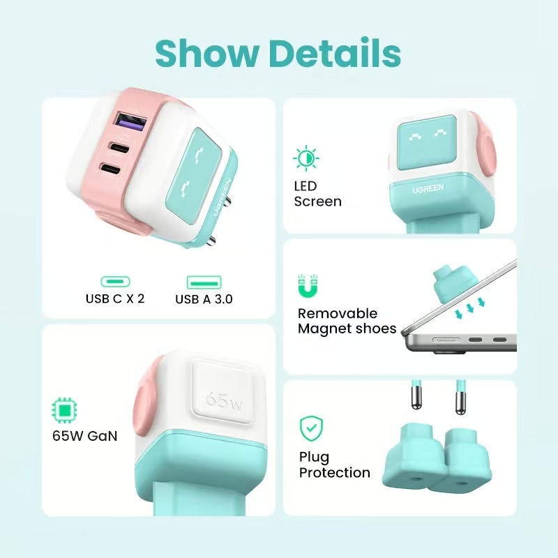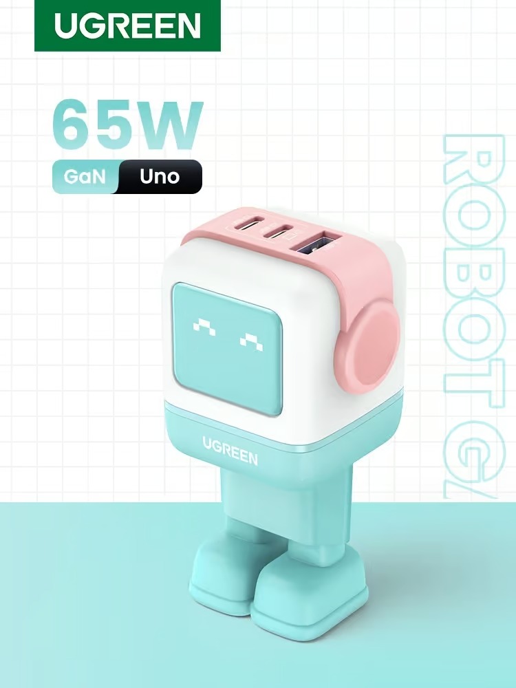 - UGREEN Uno, for power and fun: the first robot charger from UGREEN has come to us! With small robot-shaped design and 65W MAX charging power, this cute USB C charger fits perfectly into your desktop. The futuristic UGREEN Uno Charger 65W, an eye-catcher, combines functionality and fun, which is perfect as a gift for family and friends.