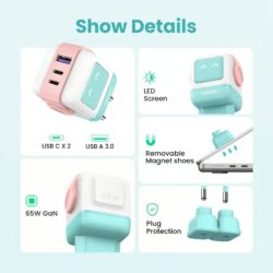 - 3-in-1 all-rounder: with 3 ports (2 USB-C and 1 USB-A), this 65W USB C charger can charge 3 devices at the same time. 3-in-1 small design is perfect for on the go and productive at work. A cute partner in daily life. Whether at home, at work or when travelling, a UGREEN Uno is enough.