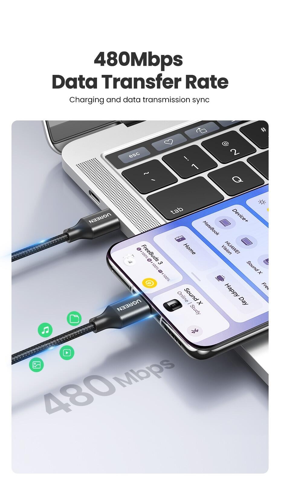 Compatible with the latest iPhone 15 models, this cable is specifically engineered to meet the charging requirements of your device. Whether you’re at home, in the office, or on the go, the UGREEN 40208 cable ensures seamless connectivity and reliable charging for your iPhone 15.