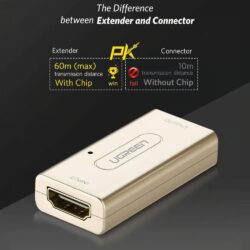 The UGREEN 40265 Female to Female HDMI Extender offers a perfect blend of performance, convenience, and reliability. With its ability to extend HDMI signals up to 150ft, support for high-definition resolutions, and easy plug-and-play installation, it’s an ideal choice for enhancing your home theater, multimedia demonstrations, and more. Upgrade your setup today and enjoy uninterrupted, high-quality video and audio with the UGREEN 40265 HDMI extender.