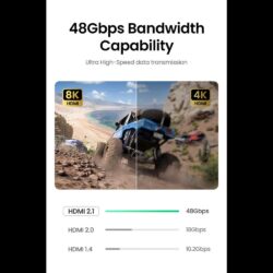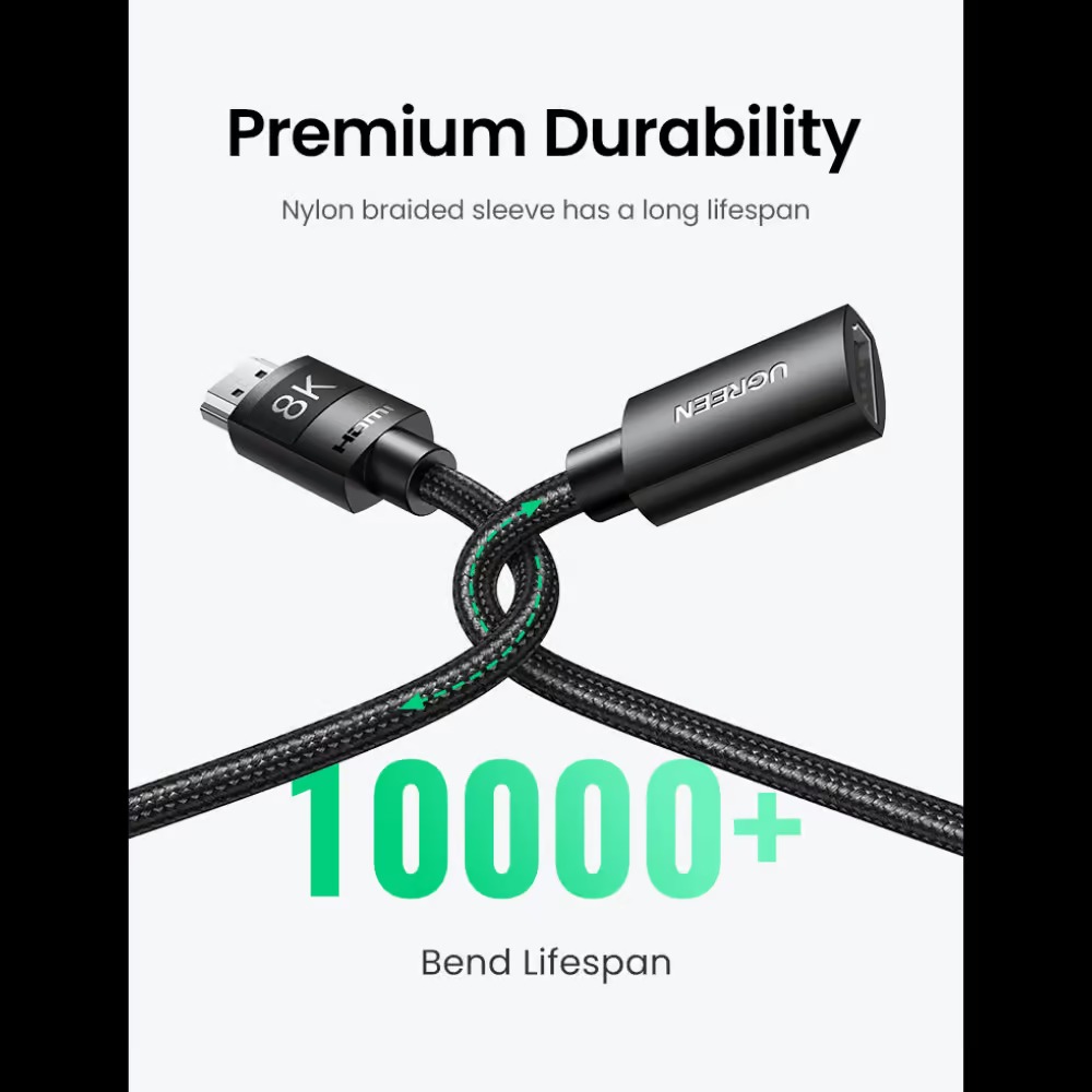 Ugreen HDMI 2.1 cable, the latest product from the Ugreen brand, has been upgraded with materials with an oxidation-resistant Nickel-plated contact design, impact-resistant, high-strength PVC coated wire ends, and 100% pure copper core, Cotton fiber body for maximum protection. With all the above advantages, it provides the ability to transmit high-resolution images and audio up to FUHD 8K (7680*4320@60Hz).