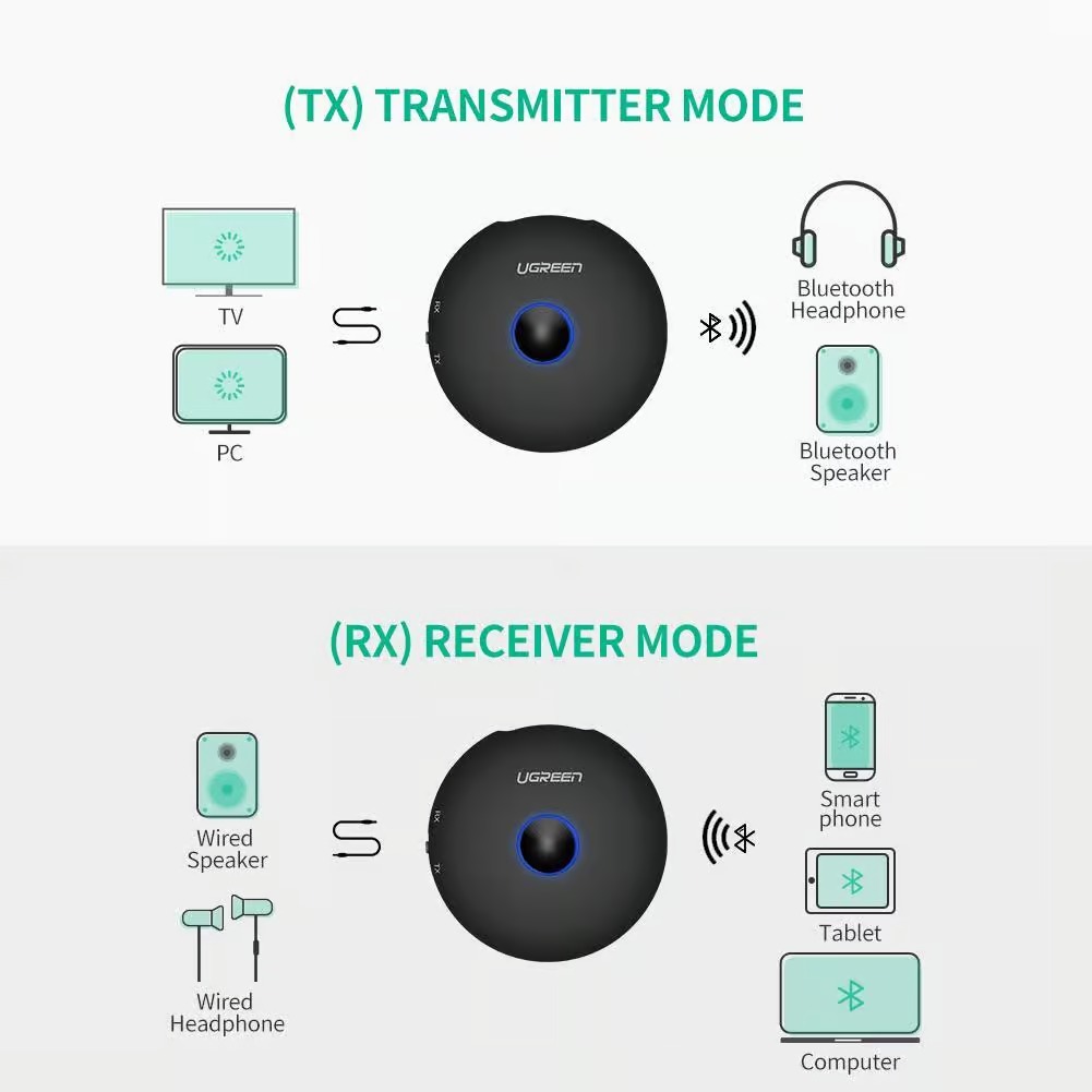 - Use the receiving function to stream music from smartphones, tablets to any 3.5mm-In or 2RCA-In device such as car stereos, amplifier, speaker docks, etc.Tx (Transmitting)