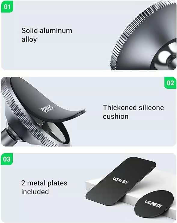 Having your phone nearby is important, whether you’re using it for directions or to run the playlist, UGREEN magnetic phone holder provides you with safer driving for hands-free navigation or phone call and keeps your hands on the steering wheel and eyes concentrating on the road.