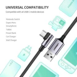 UGREEN 50941 1M USB-A 2.0 to Type-C Angled Cable – Sync & Quick Charge