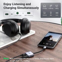 The adapter features PD3.0 and QC3.0 quick charge support, ensuring you can charge your device without worrying about power loss. Seamlessly use your audio devices while keeping your phone powered.