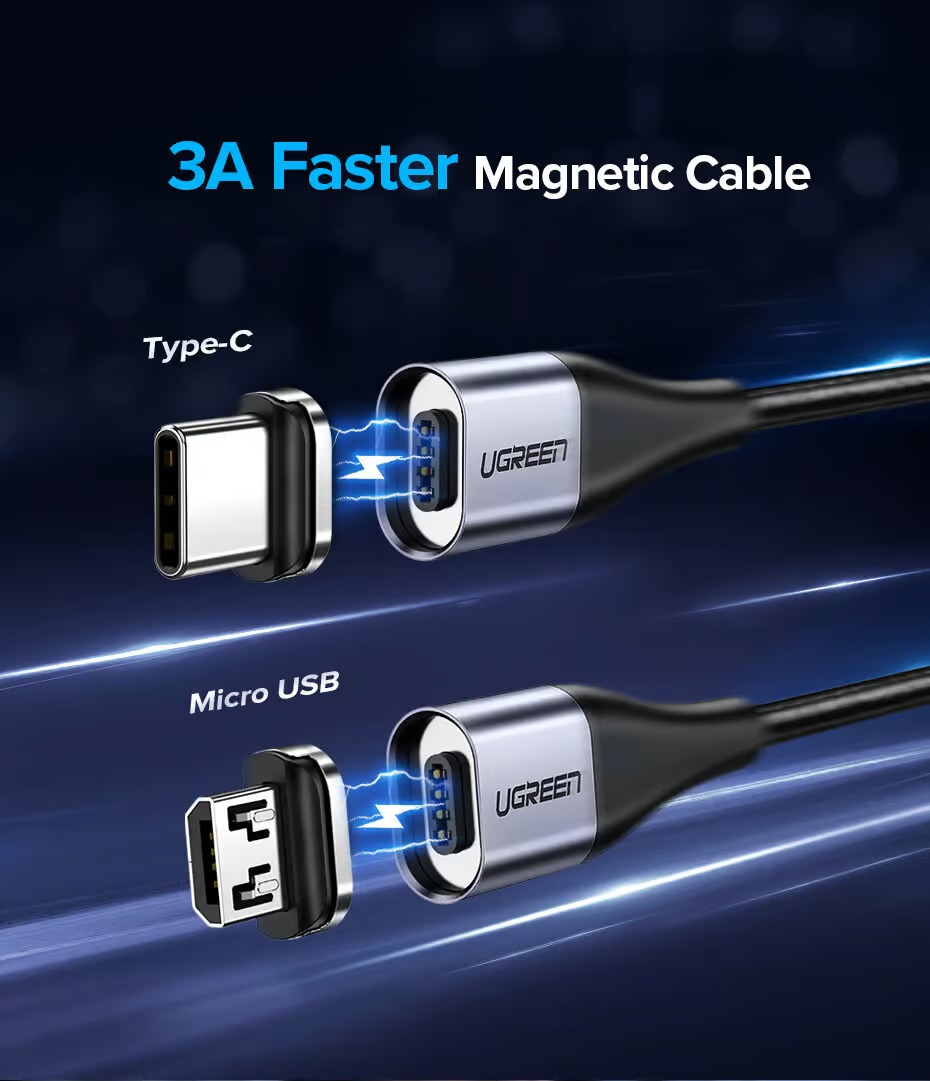 - MAGNETIC CHARGING CABLE – UGREEN Magnetic Cable measures 1 meter, perfect for versatile charging of multiple devices. It offers a choice between USB-C and Micro USB, providing compatibility for a wide range of gadgets.