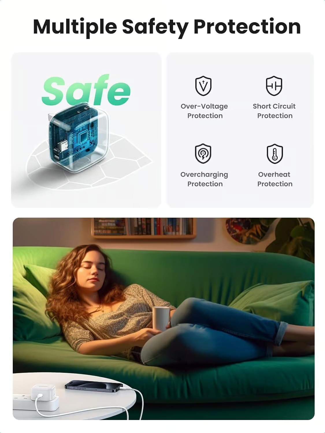 - Safe and Stable Charging: Built-in multi protections, the Type-C PD Charger Plug protects your device against over voltage, over current, over heating, and short circuiting issues and ensures a safer and more stable charging for your digital device