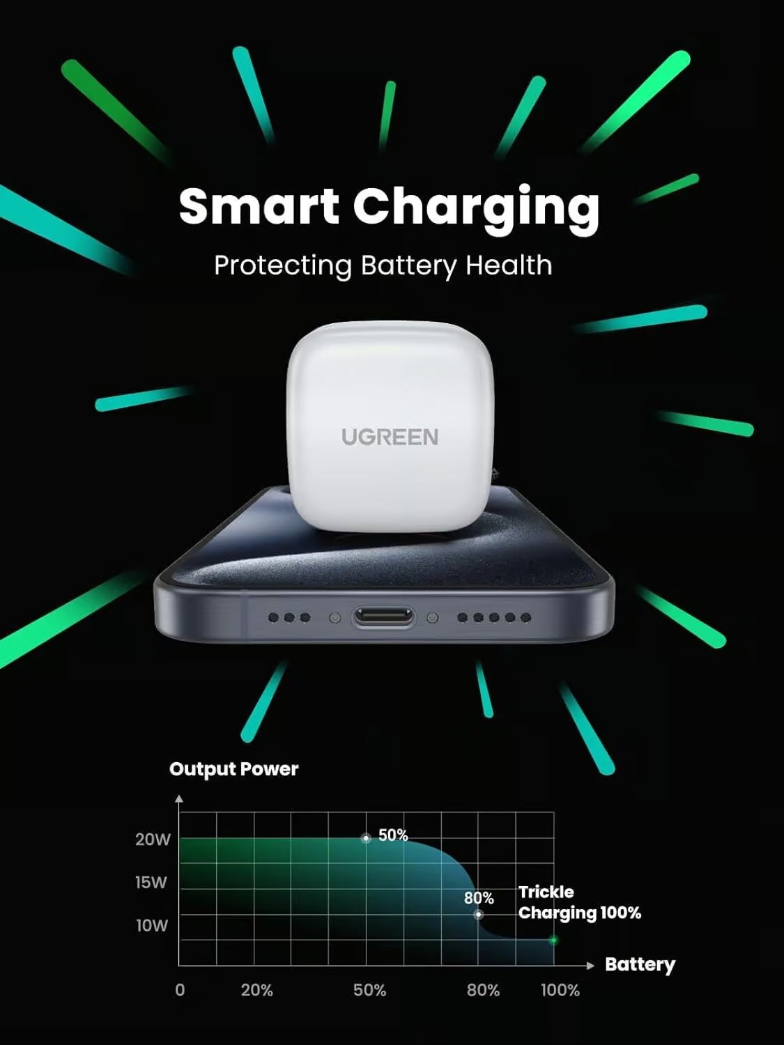 UGREEN 20W USB C Plug Supports Max 20W PD Fast Charger Type C Plug Power Adapter Compatible with iPhone 16/15/15 Pro/14/13/12/SE 3, iPad Air 5, iPad Mini 6, Galaxy S24/S23, Pixel 7/6, iWatch 9, etc