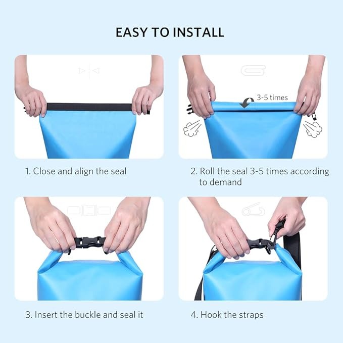 Operating the UGREEN Waterproof Dry Sack is a breeze. Simply fold the stiffener around the opening, roll it down 3-4 times for a secure seal, and then fasten the buckle. The enhanced buckle and removable clips add to its durability and ease of use, ensuring your belongings remain safeguarded throughout your adventure.