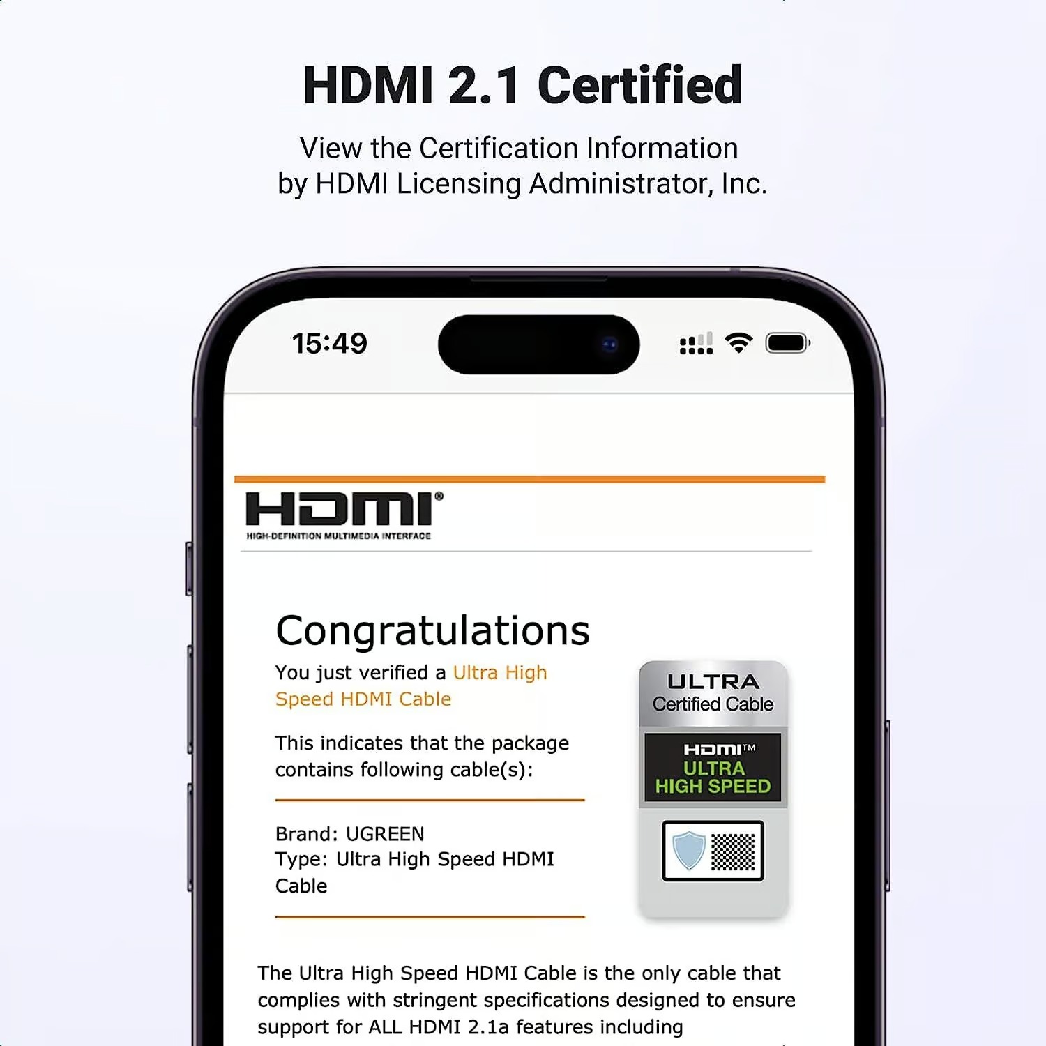 Ugreen 1.5m long HDMI 2.1 cable with 8K/60Hz resolution HDMI 2.1 standard is designed to support ultra-high resolution up to 8K/60Hz and 4K/120Hz with this high speed compatible with audio and video technology more modern and will still be suitable for future generations of home entertainment equipment.
