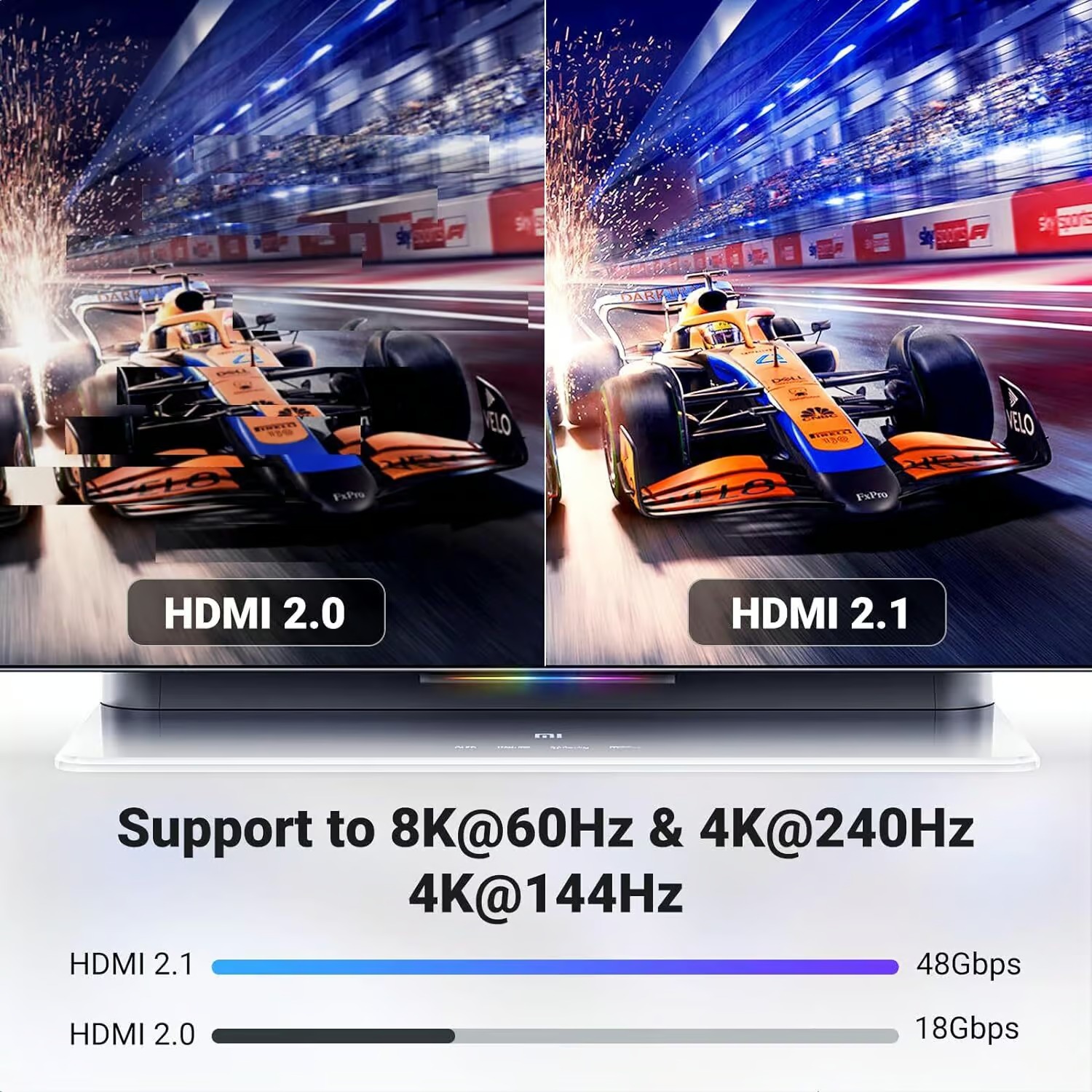 - The HDMI 2.1 cable supports HDR(high wide range) technology, providing a wider color gamut and high transmission rate to reduce latency and eliminate motion blur, always giving you the best experience.