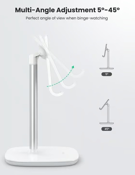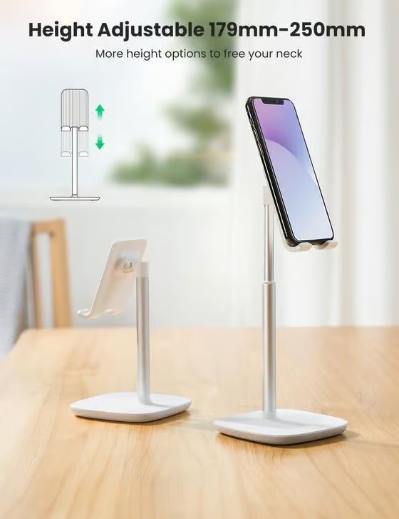 UGREEN cell phone holder can be easily adjusted from 7 inch to 9.8 inch, providing you a more comfortable viewing angle and helping reduce neck strain.