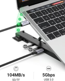 UGREEN 80551 USB C Laptop Docking Station, 4 Levels Adjustable Foldable Portable Desktop Stand with USB C 4K HDMI TF/SD 2 USB 3.0 Ports Compatible with Macbooks, HP, Dell, Acer, Asus, Lenovo and More