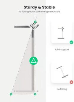 UGREEN Aluminium Headphones Stand lifts your expensive wireless gaming headsets from desk and protects them against damage from knocking and wet condition. The Headset Stand displays your over-ear headphones elegantly and keeps your desk well organised & tidy.