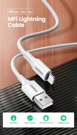 UGREEN 80822 USB-A to iPhone Lightning 2.4A Charging Cable, 1 Meter – High-Speed Data Sync, Durable Design, Universal Compatibility, Enhanced Charging Efficiency for iPhone/iPad Devices, MFi Certified